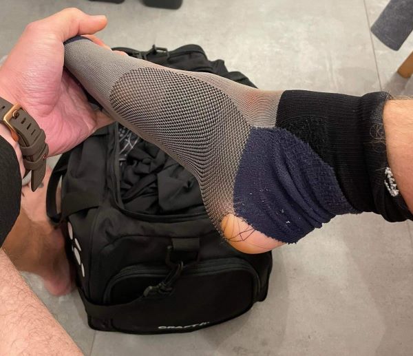 S oblečením to nakonec naštěstí bylo jednodušší. Věděl jsem, že v triku CRAFT Active Extreme s dlouhým rukávem dokážu přežít cokoliv mezi 5-20 stupni a stejně tak mi budou stačit kraťasy CRAFT PRO Trail 2v1. Největší jistotu volby jsem měl v ponožkách Inov-8 Speed Sock, které mi skvěle sedly už na několika ultra, a tak jsem si je schválně šetřil do Jeseníků. Obecně totiž platí, že můj levý palec rozedře absolutně všechno včetně kevlaru a s dírou na palci jsem to absolvovat nechtěl. Jenže rollercoaster… Ráno ještě na ubytku jsem si poctivě namazal prsty, chodidla, paty, ehm a stehna, po kraťasech jsem na levou nohu natáhl ponožku a hle – Pac-Man, takže záložní méně-děravé podkolenky. Poučení pro příště – pokud máš oblíbený pár ponožek, oblib si raději hned dva. Pak už jen tuna sladkého do vesty, voda a cola do flasků, stormshellka pro jistotu a hurá na start.