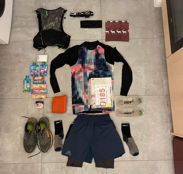 Jenže co na sebe? Aktuálně jsem v botníku nenašel nic, co bych si chtěl na 100% vzít (buď málo pohodlí nebo oběháno). Původně jsem vkládal naděje do nejnovějšího přírůstku - CRAFT Pure Trail, ale po diskuzi s veterány této akce o nástrahách trasy jsem tuto myšlenku zavrhl. Další variantou byly i organizátory doporučované Inov-8 Trailfly Ultra G 280, ale ty jsem měl letos na H8, kde bylo relativně vedro a úplně se mi v sebězích neosvědčil, jindy přívětivý, pletený svršek. Takže jsem oklepal bahno z Istrií 100 prověřených Inov-8 Trailfly G 300 MAX, které už sice mají 1000km, ale pořád posloužily víc než dobře.