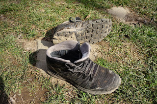 Boty jsem odložil po 800km, když přišla vlna teplého počasí a potřeboval jsem něco lehčího, prodyšnějšího, co rychle uschne, když se namočí. Podrážka by snesla ještě jednou tolik kilometrů. Na vršku by mi za chvíli vylezly malíčky. Přeci jenom bych botu potřeboval o chlup širší...