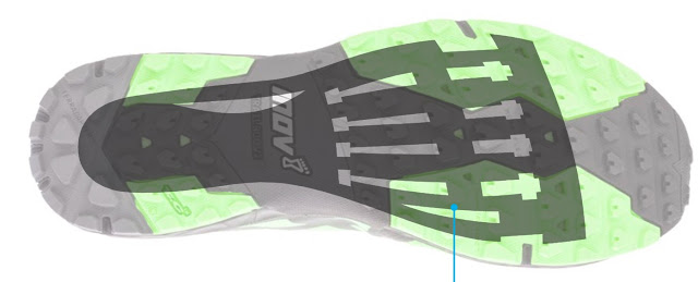 Původní verze s kulatými hranami po celém obvodu podešve měla jedinou nevýhodu. Bota v mokrém, těžším a technickém terénu, zejména pak v blátivých traverzech "ustřelovala" a ztrácela tak jeden z hlavních benefitů - dobrý grip. Proto jsme na nový koncept vzali konstrukci a design špuntů z předešlých Trailroc, které se velmi osvědčily hlavně díky své univerzálnosti na mixu různých povrchů. Z konceptu Race ultra jsme zase vzali plochou platformu podešve s ostrými hranami a prolnutím těchto dvou lahůdek vznikla nové podešev TRAILROC v2.